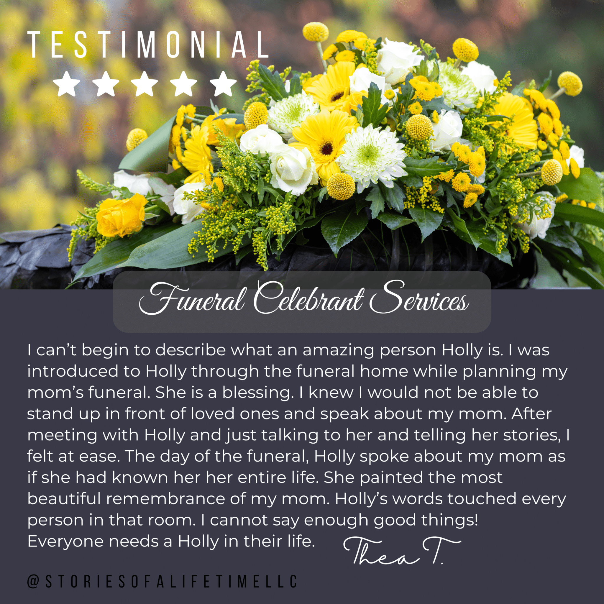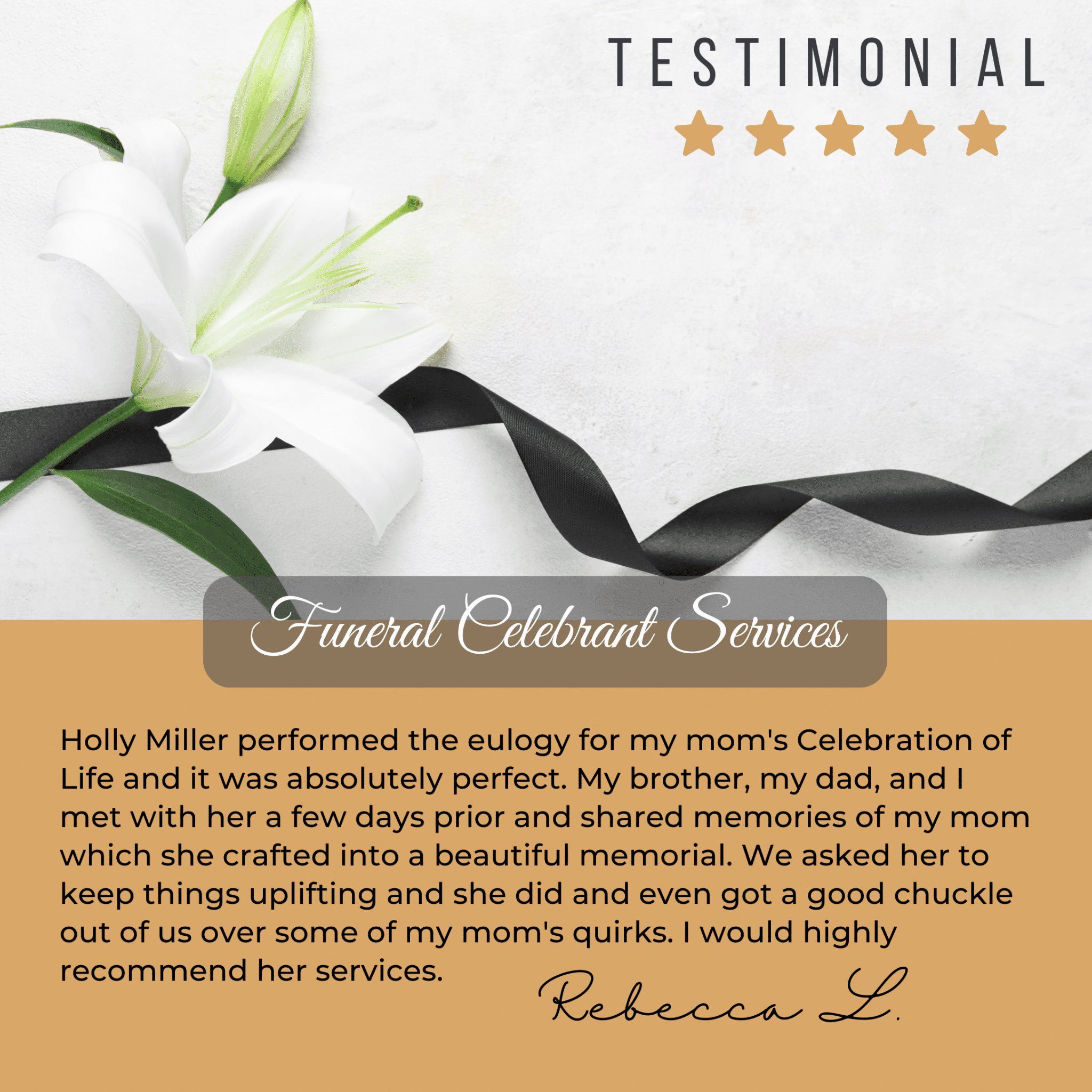 Over Holly’s many years of serving families with Celebrations of Life, three of the most common responses from families are: